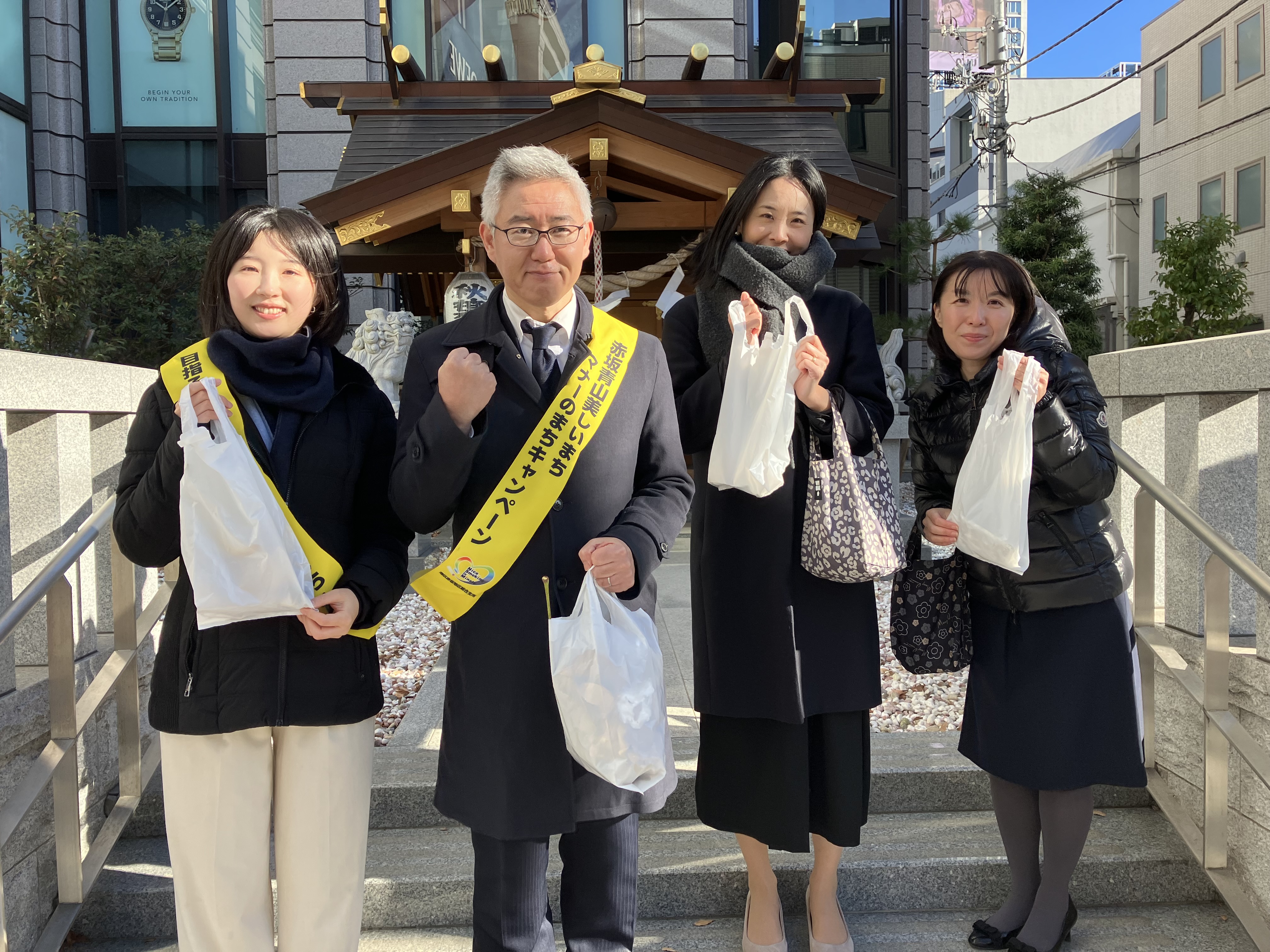 12月12日(金)、港区赤坂地区が主催する「赤坂青山 美しいまち マナーのまち」キャンペーンに参加し、表参道周辺の清掃活動を行いました。