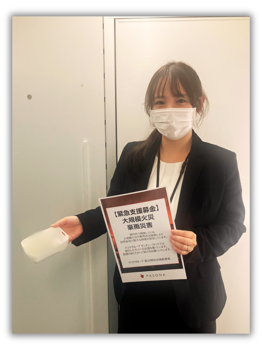 大阪支店では、パソナグループの取り組みである「サンキューウィーク」にあわせて、募金活動に参加しました。